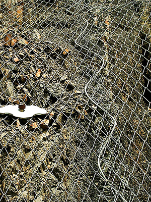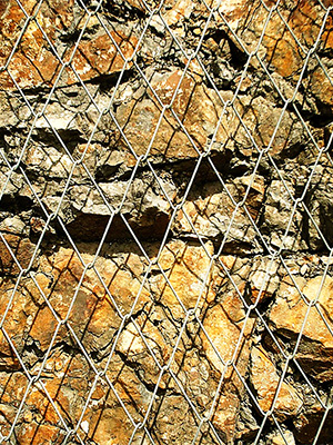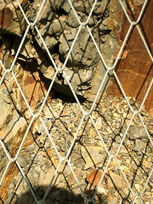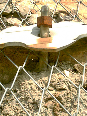 TECCO高强度格栅网通过钢筋(可施加预应力)和或钢丝绳锚杆,(有边沿支撑绳时采用)、专用锚垫板以及必要时的边沿支撑绳等固定方式,将作为系统主要构成的柔性网覆盖在有潜在地质灾害的坡面上,从而实现其防护目的。