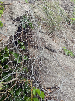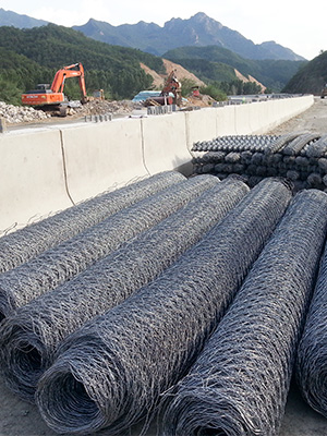 六角网护坡网是安装在悬崖、斜坡或山上的滚网形式的六角形铁丝网。它是由低碳钢丝、不锈钢丝或高尔凡丝编织而成,表面镀锌、PVC涂层或镀锌加PVC涂层。它的主要用途是防止岩石和碎片落在公路、铁路或其他建筑物上。在悬崖的顶部,必须有一排锚杆来固定网格。六角钢丝网可以是一层或两层,通常有钢丝绳环或钢丝绳和铆钉来固定。