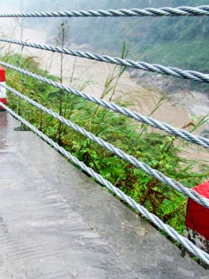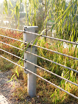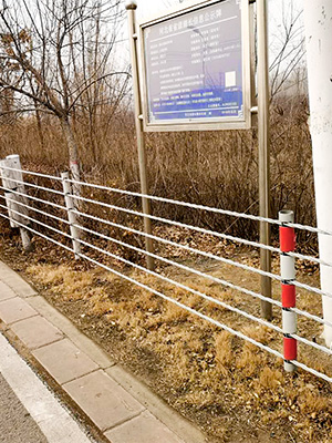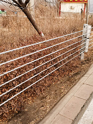 缆索护栏护栏是柔性护栏的主要代表形式。它是由几根施加初始张力固定在柱子上的线缆组成的结构。它主要依靠缆索的拉应力来抵抗车辆的碰撞,吸收碰撞能量。