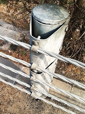 缆索护栏是一种柔性结构,电缆在弹性工作范围内,可重复使用,维修方便。柱间距更加灵活,不均匀沉降对柱间距的影响较小。