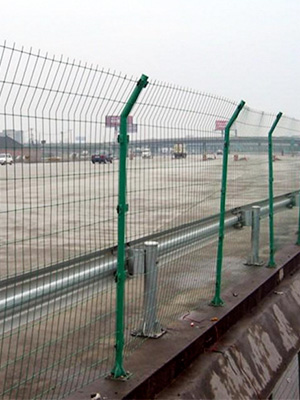 用于铁路两侧的隔离防护设施起隔离和防护的作用的护栏网产品,它目前被广泛应用于高速公路、铁路、垃圾填埋场试验场地,耐用、美观、视野开阔,具有优良的隔离性能。网片经防腐处理:经除锈、打磨、钝化、硫化等工艺后,采用镀塑处理,色彩为果绿色,镀层厚度为0.5~0.6mm,镀粉采用抗老化性能较佳的进口耐候性树脂粉料,镀层必须颜色一致,表面光滑,不允许有流挂、滴瘤或多余结块。镀件表面应无漏镀、露铁等缺陷。
