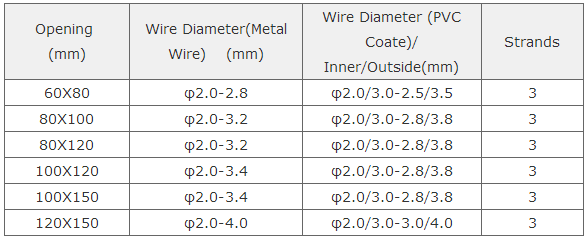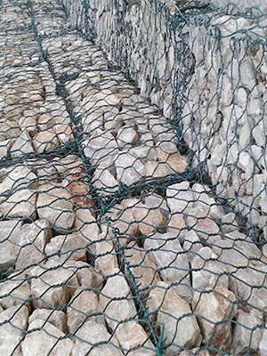 Gabion box is wire containers made of hexagonal wire netting. Wire diameter varies with the hexagonal netting. For gabion mesh with no pvc coating, the wire diameter ranges from 2.0mm to 4.0mm. For those PVC coated hexagonal wire netting, the outside diameter ranges from 3.0mm to 4.0mm. The wire of the outside frame edge is one wire gauge thicker than the wire used for hexagonal wire netting.