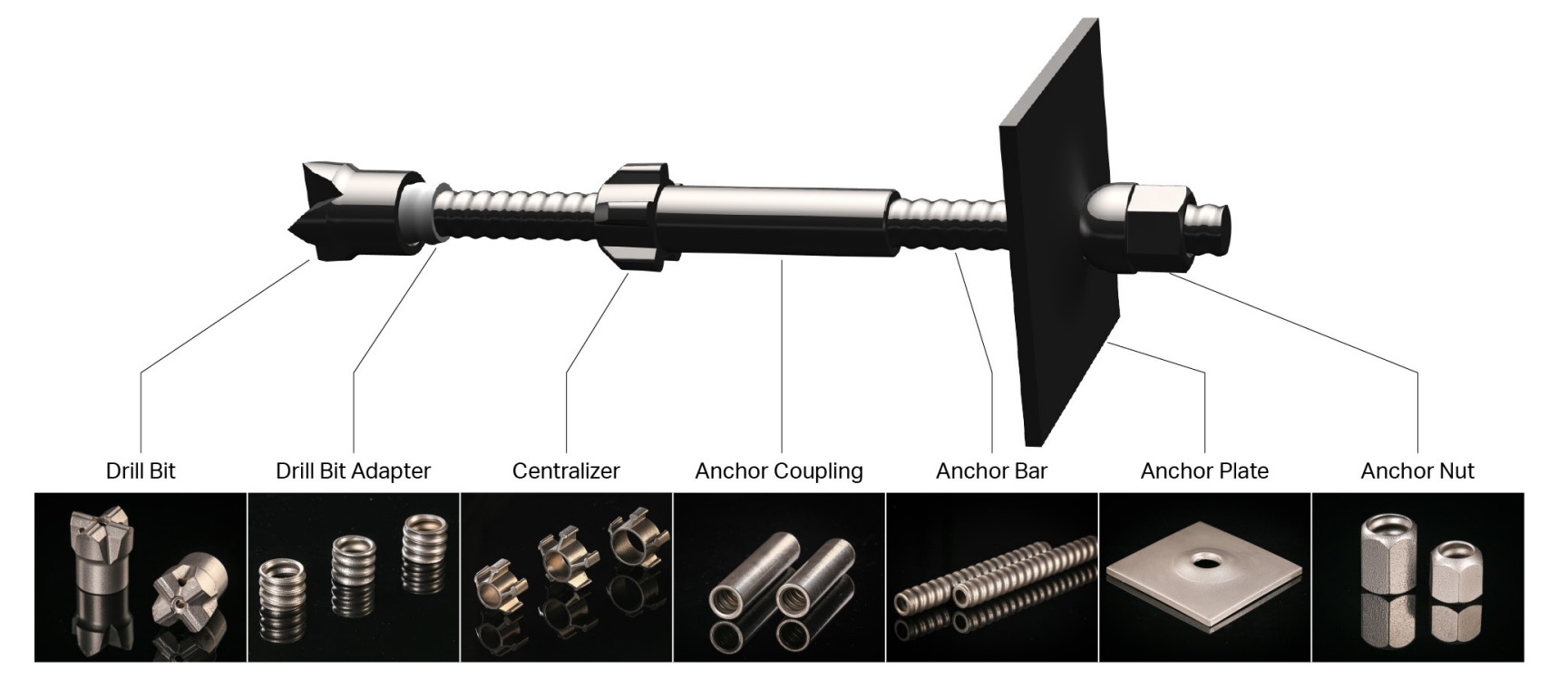 Self-drilling anchors are used for drilling with water or air flush or for simultaneous drilling and grouting. The hollow anchor bars are manufactured from seamless steel tubes.